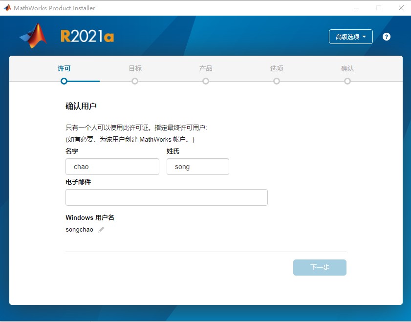 3. 创建Mathworks账户(必须操作,不可跳过),参考Mathworks账户创建方法