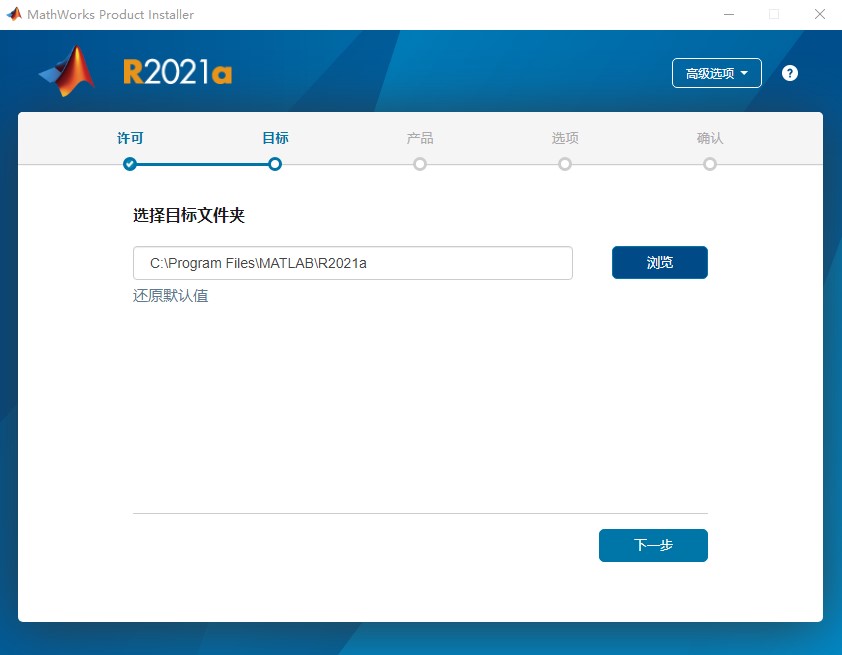 6. 在选择目标文件夹页面,接受默认的文件夹或点击浏览选择其他文件夹,然后点击下一步
